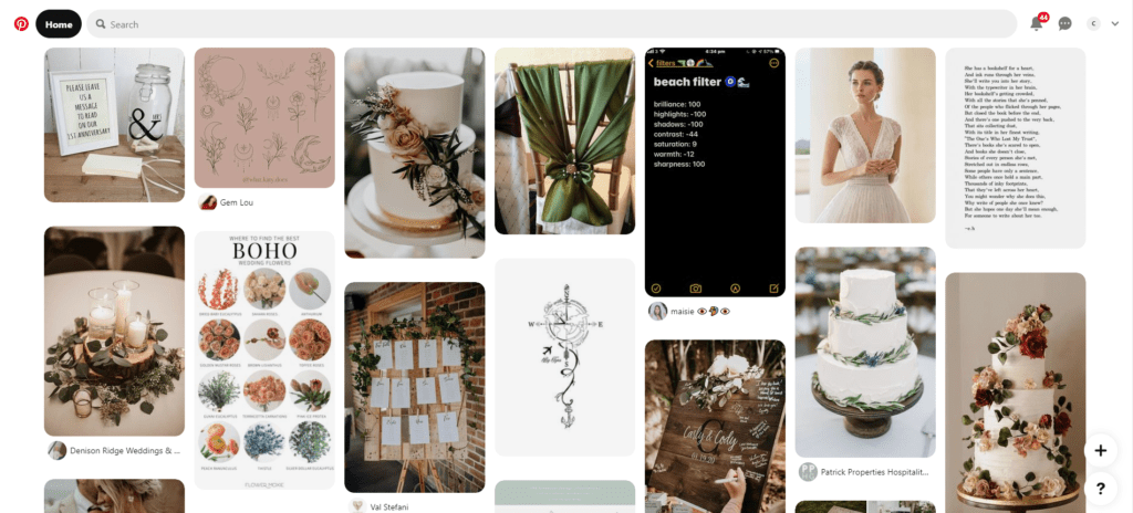 Don’t be bothered with the various wedding inspirations floating on the internet, instead, you can make use of them. You can actually hand this over to your VA, where he/she can create multiple Pinterest boards—or even a visual collage on a cork or poster board—which will help you to figure out what sort of look and feel you want and keep you aligned with your larger vision.